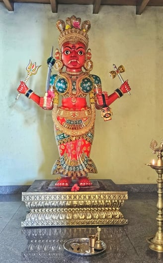 Nestled in the serene town of Byndoor, Udupi district, the Kalavady Sri Eshwara Marikamba Temple stands as a testament to spiritual devotion and cultural heritage. This ancient temple, located a mere 26 kilometers from the renowned Kollur Mookambika Temple, 36 kilometers from the iconic Murudeshwara Temple, and 130 kilometers from the historic Sirsi Marikamba Temple, has been a sacred place of worship for over 700 years.